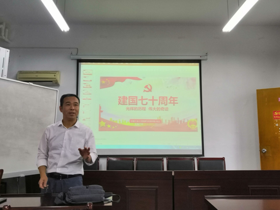 10月21日下午,2138CC太阳集团党委书记以“建国七十周年——光辉的历程伟大的奇迹”为题,结合“不忘初心、牢记使命”主题教育学习调研和学院实际,为全体学生党员讲授了一堂生动的主题党课。