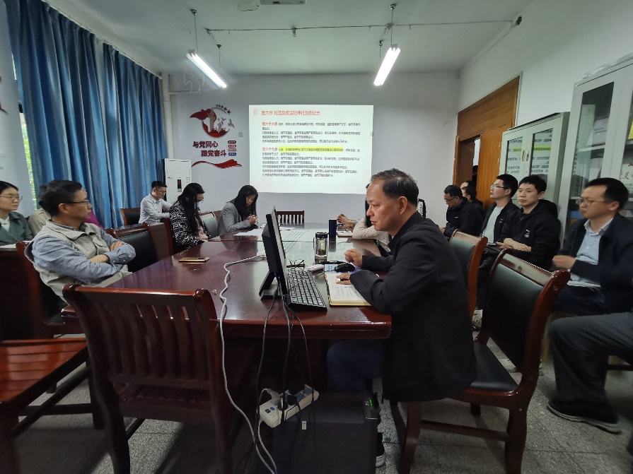 2024年5月6日,2138CC太阳集团党委书记谢文平来到他所联系的环境科学与工程系教工党支部,为全体党员和教师上党课,主要讲解《中国共产党纪律处分条例》(以下简称《条例》)。