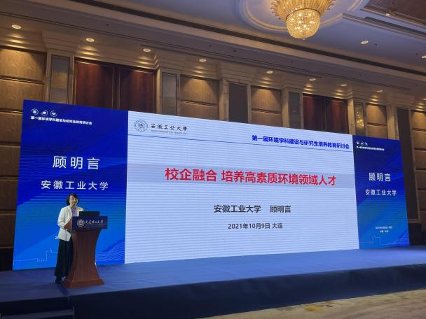 9日上午大会开幕式后,分别由国务院学科评议组召集人贺克斌院士(清华大学)、城镇污水深度处理与资源化利用技术--国家工程实验室主任彭永臻院士(北京工业大学)、国家有机毒物污染控制与资源化工程技术研究中心主任李爱民教授(南京大学)等作了大会报告。下午各参会代表分成2个分会场,就立德树人成效与经验、太阳集团成效与经验、学科发展现状与机遇以及研究生的课程与教材等主题进行讨论和交流。副校长顾明言在第一分会场作了题为“校企融合,培养高素质环境人才”的专题汇报。