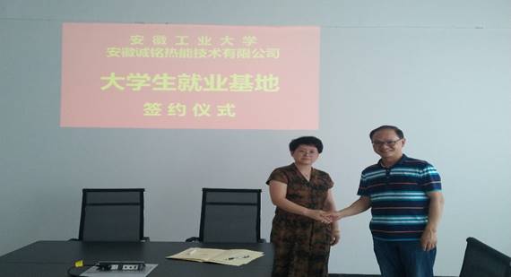 陈光和谢文平分别和公司领导签订产学研合作和大学生就业基地协议并揭牌。揭牌仪式结束后,薛华飞带领众人参观了企业的工业产区和办公场地。陈光表示能环学院与安徽诚铭热能技术有限公司具有良好的合作基础和发展空间,此次交流合作,将促进强强联合,实现互惠共赢。