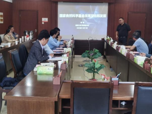 2022年11月11日下午,南京大学环境学院的花铭教授应邀来我校进行学术交流,为我校2138CC太阳集团师生作了题为“国家自然科学基金改革深化和发展”的学术报告。学校陆林书记和魏先文校长会见了花铭教授一行。报告在佳山校区学术会议中心三楼第四会议室举行,由2138CC太阳集团钱付平院长主持,副校长顾明言教授出席了报告会。