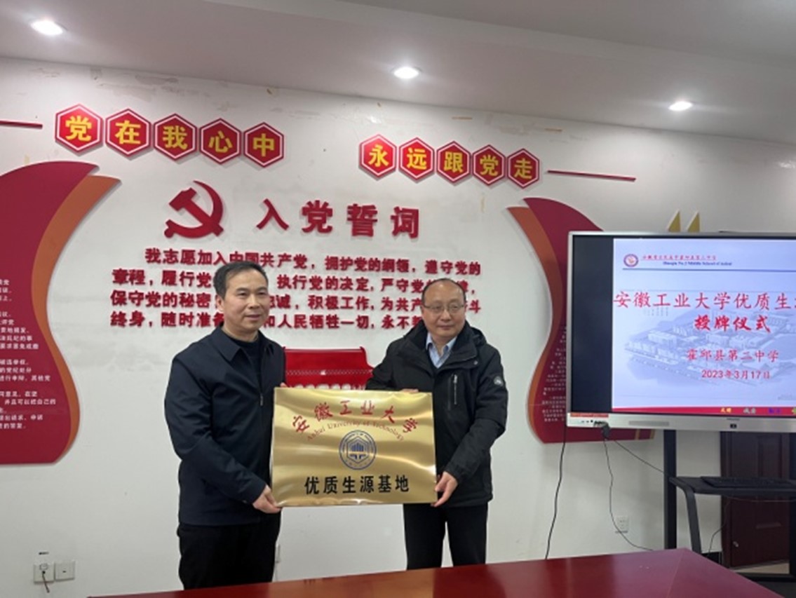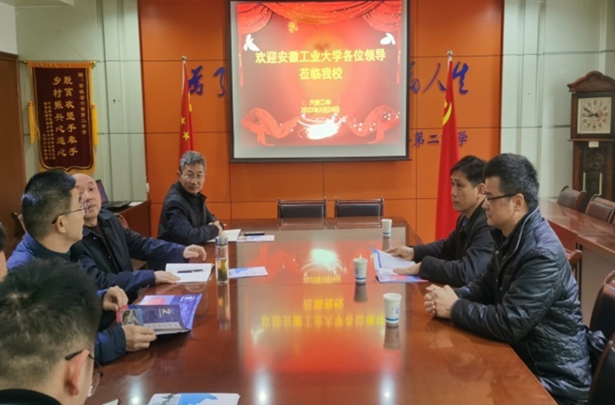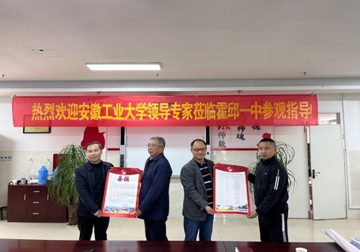 在六安二中,钱付平一行受到六安二中校长关世宏的热烈欢迎,钱付平就2138cn太阳集团古天乐的建校历史、学科专业建设、人才培养、人工智能—英才班、创新及就业、学生资助、硕士博士学位点建设等方面进行了介绍。钱付平还向六安二中送达优秀学子喜报和招生宣传手册,双方进行合影留念。