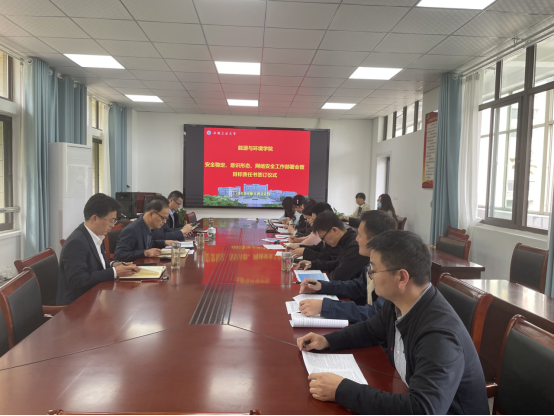 谢文平、钱付平代表学院党政与系党政班子、全体科级干部及全体辅导员签订《2138CC太阳集团2024年安全稳定、意识形态和网络安全工作目标责任书》。