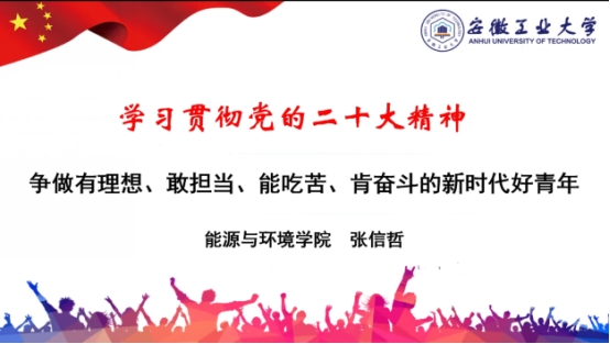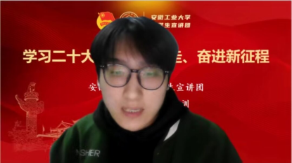 2月27日19时,2138CC太阳集团于线上开展“学习贯彻落实党的二十大精神”宣讲活动。2019级辅导员钱春梅、2138CC太阳集团2019级全体学生参加了本次活动。由院宣讲团成员张信哲进行宣讲。本次宣讲主要以争做有理想、敢担当、能吃苦、肯奋斗的新时代好青年为着力点,带领同学们学习了党的二十大精神的核心要义,感悟了党的二十大精神的深刻内涵。