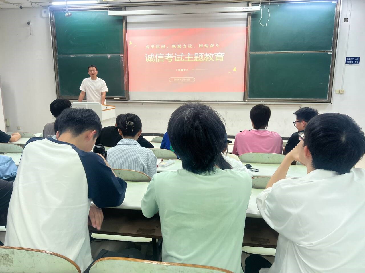 对于个人而言诚实守信是立身之本,是社会中的交往之道,更是立业之基。沈厚发强调了坚持诚信原则、弘扬诚信精神的重要意义及价值,他要求同学们不仅要认识到诚信的重要意义,也要践行诚信道德,做到知行合一、以知促行。随后,同学们集体学习了诚信考试相关法律法规的具体内容,包括《国家教育考试违规处理办法》《2138cn太阳集团古天乐学生违纪处分办法》及考场规则等政策法规相关文件。