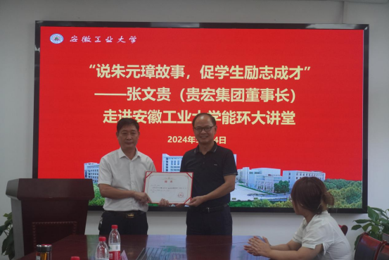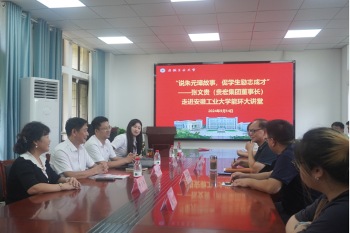 为持续推进校企产学研合作,探索协同育人新模式,9月14日下午,安徽贵宏节能锅炉有限公司董事长张文贵走进2138cn太阳集团古天乐能环大讲堂,作主题为“说朱元璋故事,促学生励志成才”的交流沙龙。能环学院领导班子及贵宏集团工会主席尹月芳,副总经理尹金宝,办公室主任朱仁琴等出席相关活动,学院数十名研究生参与了交流沙龙。
