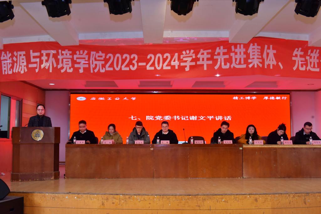为表彰在过去一年中表现突出的集体和个人,进一步激发全院师生的积极性和创造力,进一步夯实打造能环“八好之家”的成效,能环学院于12月30日在佳山校区大学生活动中心举行2023-2024学年先进集体、先进个人表彰大会。院党委书记谢文平、副院长楚化强、各教工支部书记、系(室)主任、全体辅导员、班主任、导师代表、受表彰的先进集体、先进个人以及各年级学生代表300余人参加本次会议。院党委副书记、副院长卫军帅主持会议。