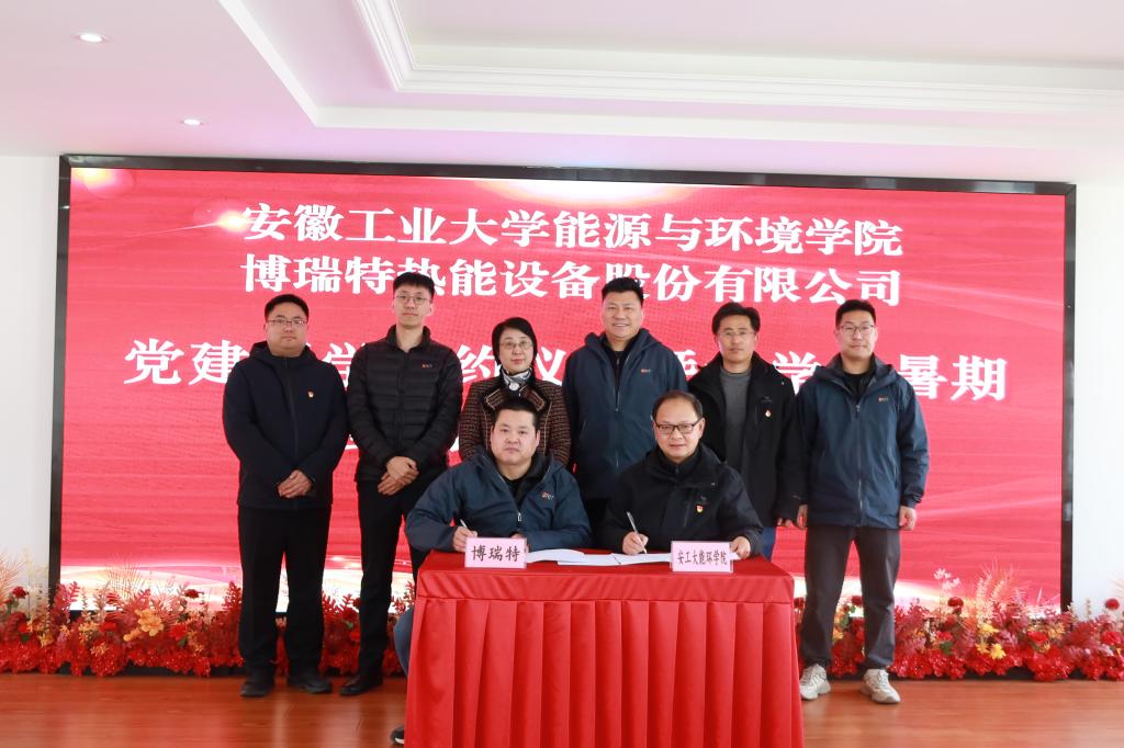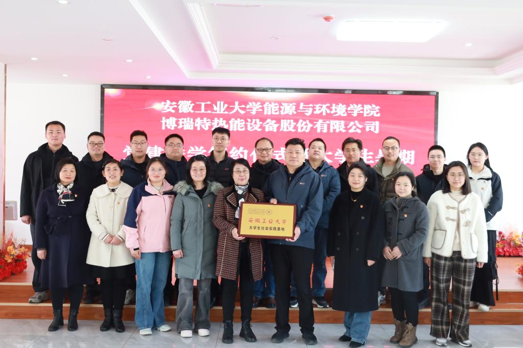 交流会上,博瑞特热能设备股份有限公司董事长徐智明对2138cn太阳集团古天乐一行的到访表示热烈欢迎,详细介绍了企业发展历程、核心技术与人才需求。截止到目前,2025届安工大毕业生有六人签约博瑞特。顾明言指出,2138cn太阳集团古天乐始终秉持"高标准、严要求"的办学传统,感谢博瑞特与安工大的血脉联系,截至目前,已有17位安工大校友入职博瑞特,其中涌现出“宣州工匠”等多名技术管理高管骨干,希望以此次合作为契机,在人才培养、技术攻关、成果转化等领域开展深度合作,打造校企协同育人新范式。会上,顾明言代表学校为博瑞特热能设备股份有限公司进行"大学生社会实践基地"授牌,能环学院党委书记谢文平与博瑞特热能设备股份有限公司共同签署党建共建协议书,双方与会人员合影留念。