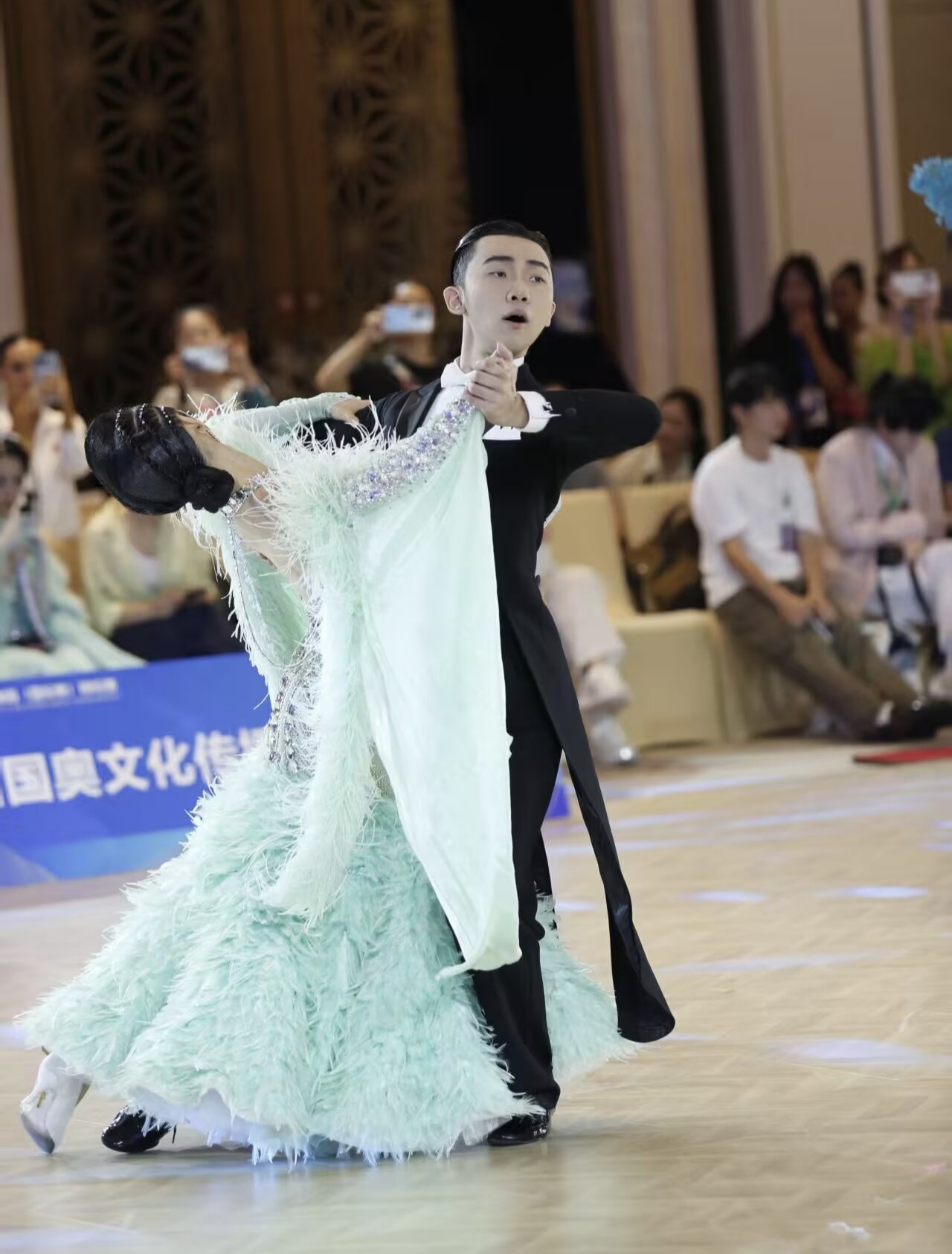 这份荣誉的背后,是无数个日夜的辛苦训练。汗水浸湿了衣衫,伤痛也时常相伴,但他们从未放弃。正是这份坚持与热爱,让他们在赛场上绽放出最耀眼的光芒!赛后,潘咏说到:“我无比感谢校、院老师们的关心支持,以及教练和舞伴的教导与陪伴。每周近三十个小时的训练磨砺锻造了我的不屈。我会继续努力,争取在今后的比赛里再攀高峰!”