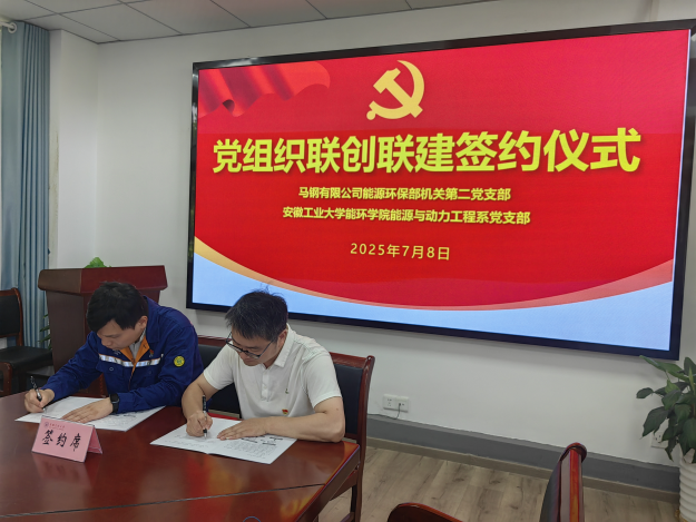 为充分发挥党建引领作用,激发党建工作活力,提升党建工作水平,推动基层党组织形成优势互补、资源共享、引领发展的党建工作新格局,推动各项工作再上新台阶,7月8日上午我院能源与动力工程系党支部与马钢有限公司能源生态环境部机关第二党支部举行联创联建签约仪式。学院党委书记谢文平,马钢有限公司能源生态环境部党委书记、副部长章连生,两个签约支部的支委及党员骨干出席签约仪式。仪式由马钢有限公司能源生态环境部机关第二党支部支部书记王思丞主持。