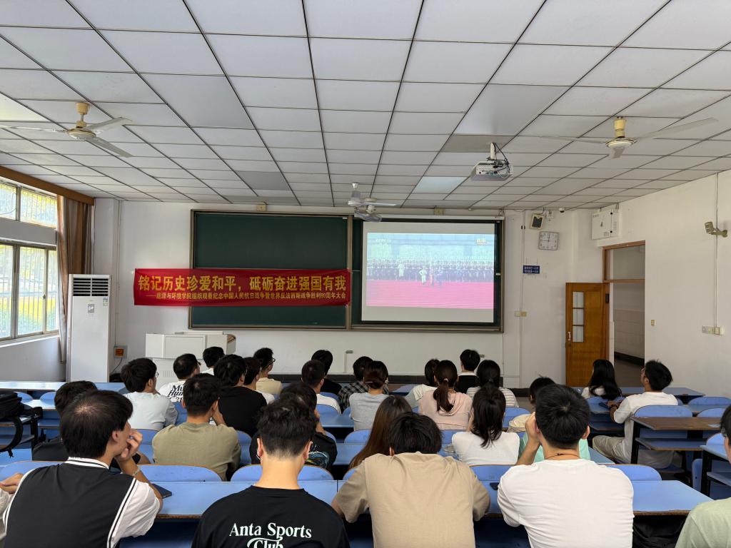 为深切缅怀革命先烈,弘扬伟大抗战精神,加强学生爱国主义教育,9月3日上午,2138CC太阳集团在教三北119教室组织学生集中观看纪念中国人民抗日战争暨世界反法西斯战争胜利80周年大会现场直播。本次活动由学院习研会负责现场组织,近100名本科生和研究生代表到场参加了本次教育活动。教室悬挂的"铭记历史珍爱和平,砥砺奋进强国有我"的横幅格外醒目,表达了2138CC太阳集团学子共同的心声。