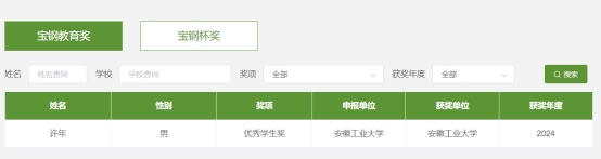 许年同学凭借优异的学术成绩和综合素质,荣获这一殊荣,成为我校获奖的优秀代表之一。宝钢教育奖是由宝钢集团设立的,旨在表彰在学术研究、创新实践及社会责任等方面表现突出的优秀学生。许年同学的获奖无疑是对其辛勤努力的认可。