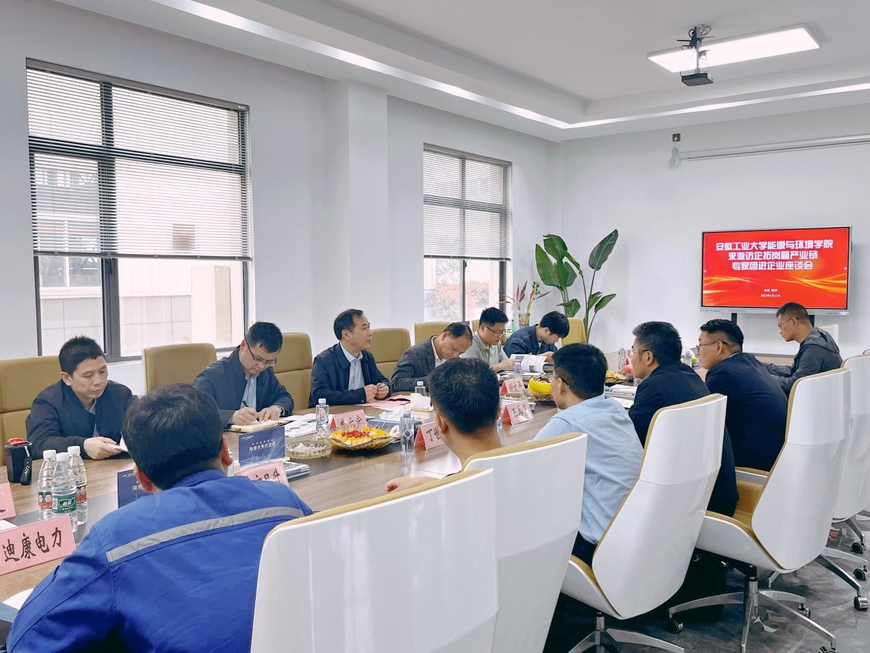 11日下午,凤杰一行首先来到海澄水务科技集团有限公司,与海澄水务科技集团有限公司、东方日升(安徽)新能源有限公司、安徽迪康电力科技有限公司和丽普汽车科技公司四家企业负责人进行产学研合作交流,并与部分校友开展座谈。交流会上,凤杰介绍了学校和学院的发展历程、学科优势以及在人才培养等方面所取得的成绩,表示海澄水务科技集团有限公司等四家公司业务范围与2138CC太阳集团的专业研究方向高度契合,具有很大的合作空间。凤杰感谢上述四家公司为安工大校友们提供的良好发展平台,希望今后能进一步加强合作,发挥各自优势,为国家的能源与环保事业做出新的更大贡献。