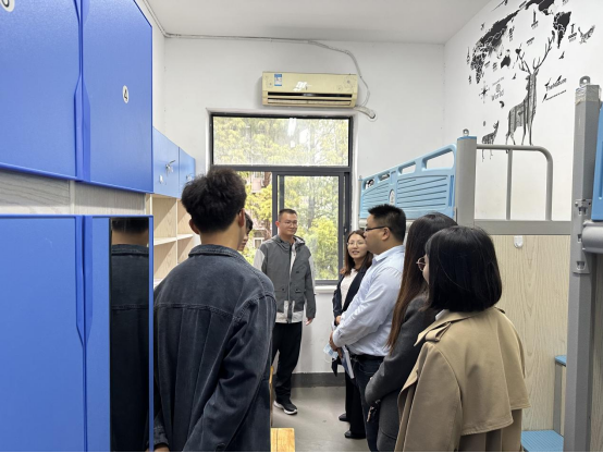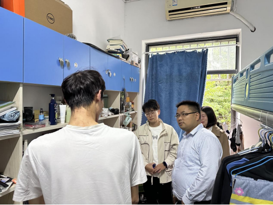 每到一处,老师们都要强调宿舍用电消防安全、内务整理的重要性等方面,对环境卫生好、宿舍氛围活跃的宿舍给予充分肯定,希望他们充分发挥榜样示范作用,带动周边宿舍共同做好宿风建设;对存在问题隐患的寝室当场提出了整改建议要求,给予鼓励关切,督促尽快整改完善,确保安全文明稳定。同时,老师们还与同学们就学业进展、未来规划、“心情”状态及防范电信网络诈骗等做了深入交流。老师们希望全体同学加强自我教育、管理、服务和监督,坚守“安全第一”,保持整洁有序的宿舍环境;养成健康文明、积极向上的生活习惯,保持阳光开朗、善于求助的良好心态;珍惜在校时光,充分利用课余时间开展各种有益身心健康的科研文体活动,为下一步的考研和成功就业夯实基础。