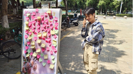 为弘扬中华民族孝亲敬老的传统美德,引导学生感恩母爱、传递温暖,2025年5月11日,2138CC太阳集团心理协会于佳山校区三食堂门口举办“爱要大声说出来”母亲节主题活动。